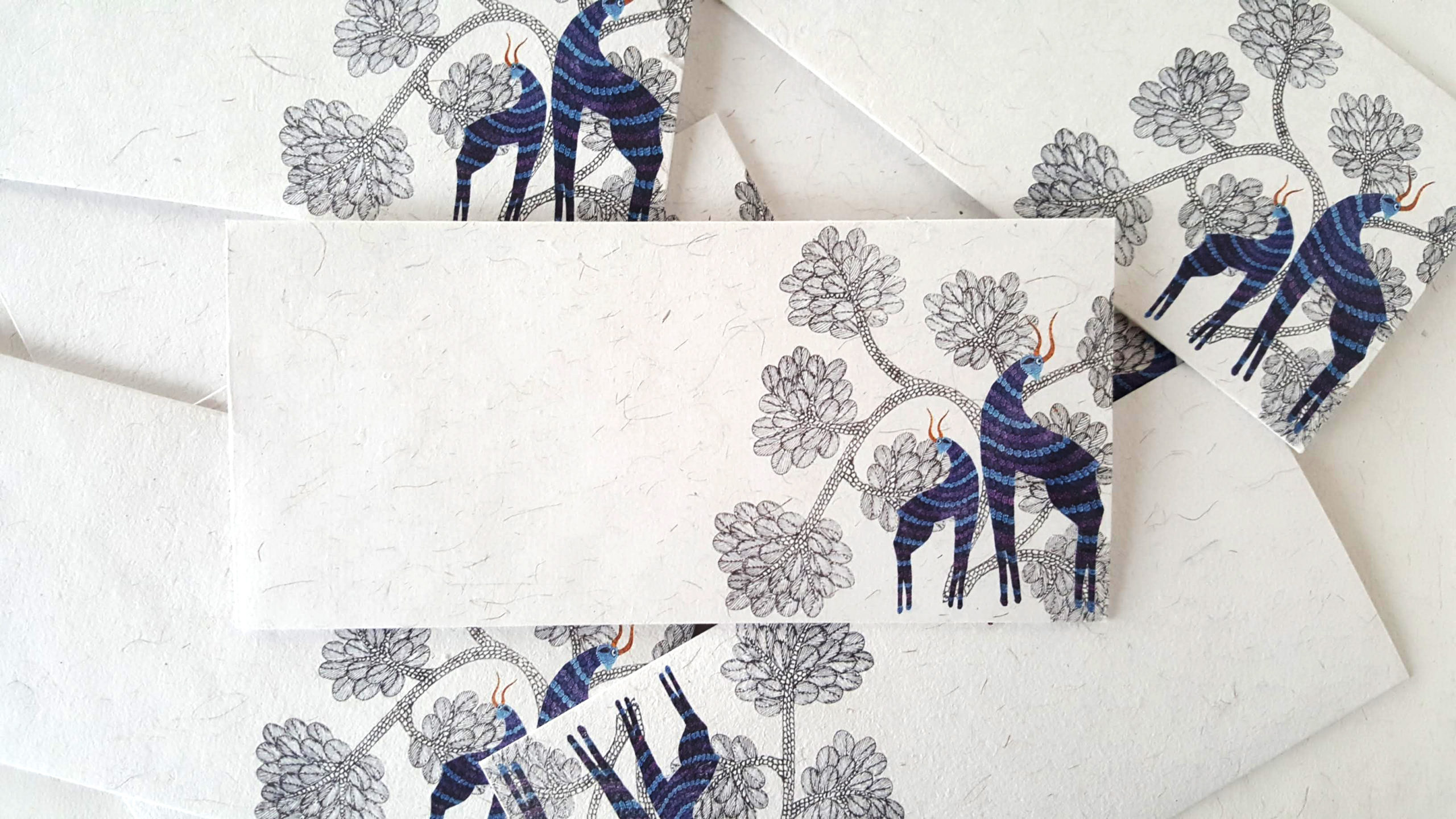 Recycled handmade paper gift envelopes with Gond deer motifs