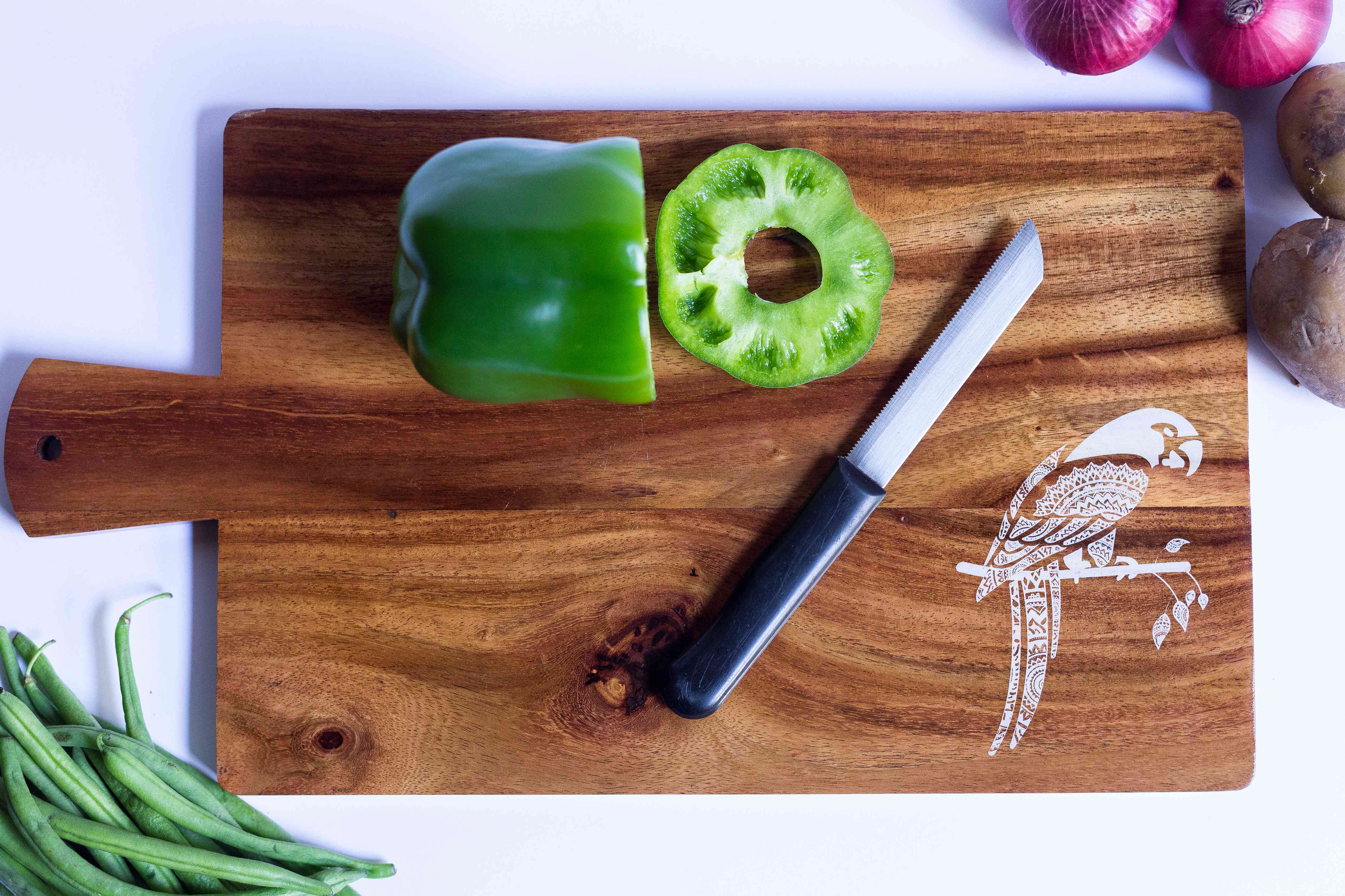 Mandala Solid Teak Wood Chopping Board – Parrot